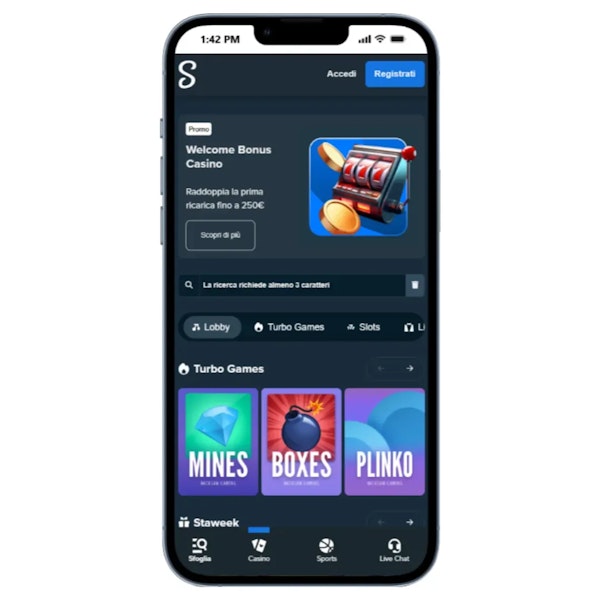 Attualmente no, ma Stake offre un sito web ottimizzato per mobile che permette di accedere a tutte le funzionalità della piattaforma da dispositivi mobili. Sebbene non esista un'app dedicata, l'esperienza mobile su Stake è fluida e funzionale.