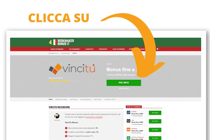 Se vuoi saperne di più sui termini e le condizioni di questo bonus, ti preghiamo di leggere direttamente i dettagli sul sito di VinciTu.